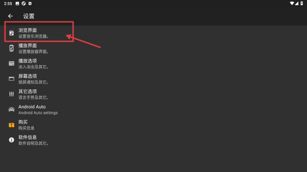 3、在设置界面,点击浏览界面选项,进入浏览界面设置页面。