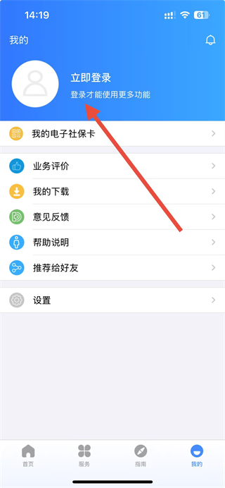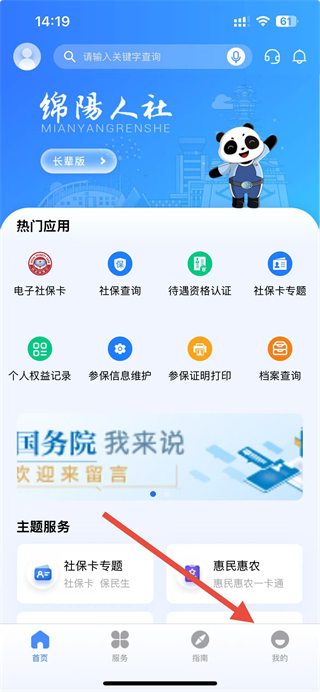 1、打开绵阳智慧人社app,点击底部导航栏的我的选项进入个人页面。