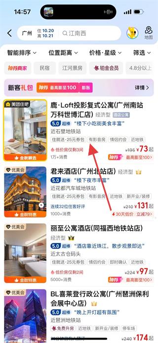 3、在酒店列表页面,选择想要的酒店进入该酒店详情页面。
