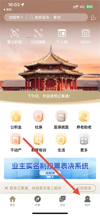 1、打开辽宁医保app,点击底部导航栏的我的选项进入个人专属空间页面。