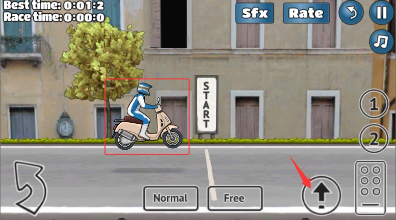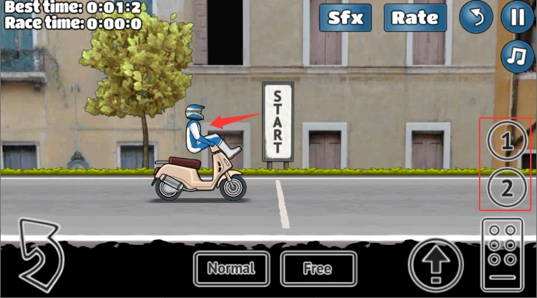 3、点击控制姿势按钮来调整车手的身形姿态,正确的身体控制能让摩托车在特技表演时保持更好平衡。