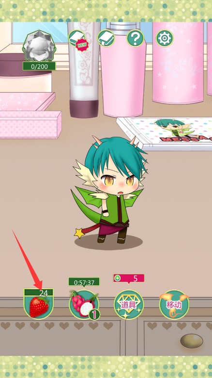 4、在主界面使用草莓喂养龙伙伴角色,每次喂食都能增加亲密度与经验数值。