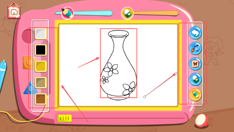 1、提供丰富的色彩选择搭配方案系统完善,帮助孩子认识颜色并培养色彩搭配能力和审美观念建立的引导。
