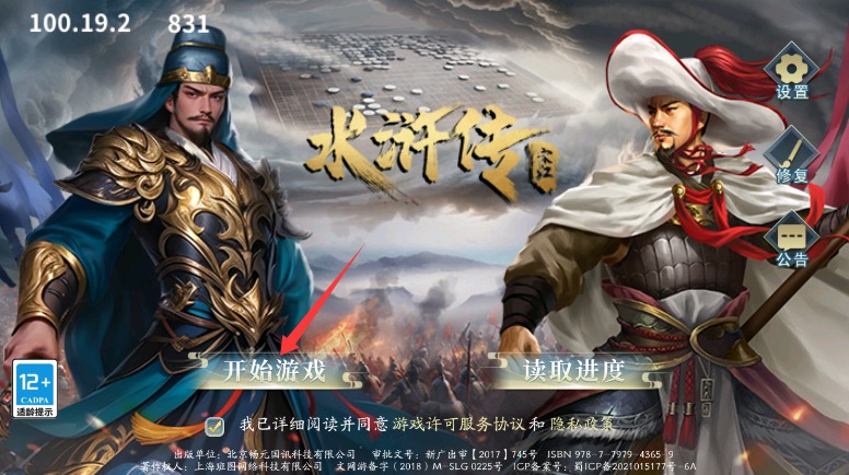1、启动游戏后点击开始按钮,即可进入这部以水浒传为背景的策略战棋世界。
