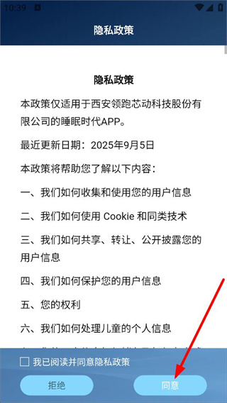 1、首先在隐私政策页面,点击同意,进入登录页面。