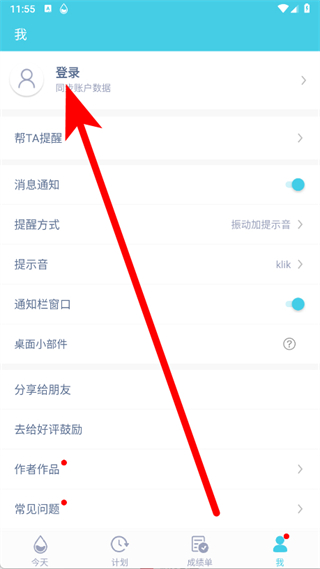 1、打开喝水提醒,点击页面底部的我,进入个人页面。