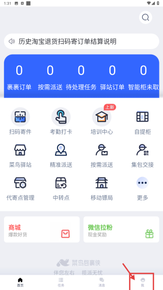 1、打开菜鸟相关应用,点击底部我选项,进入个人中心页面。