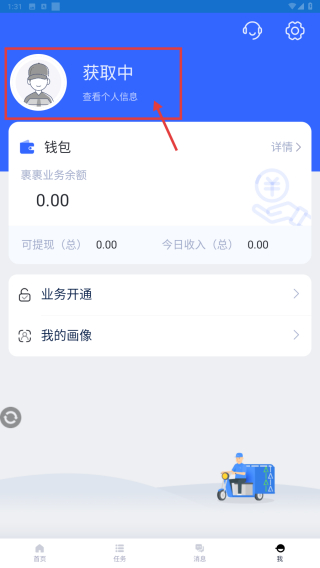 2、在个人中心页面,点击个人信息区域,进入个人信息页面。