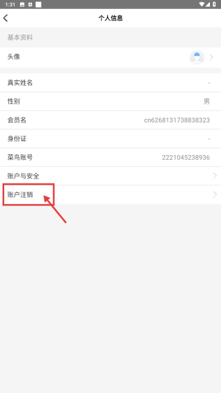 3、在个人信息页面,点击账户注销选项,进入账号注销说明页面。
