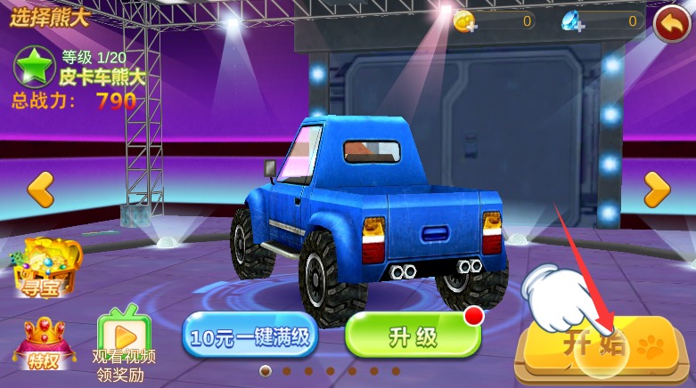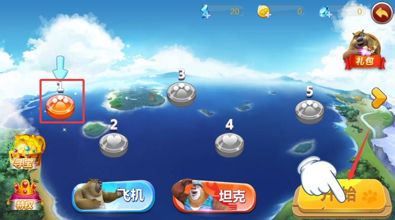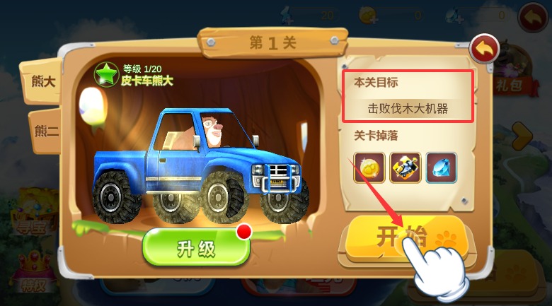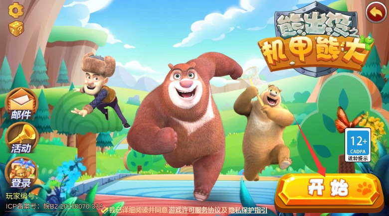 1、初次启动游戏程序后点击中央开始按钮,即可正式进入机甲熊大的冒险世界。