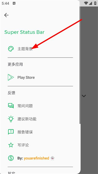 2、在功能菜单中,点击主题背景,进入主题背景设置页面。