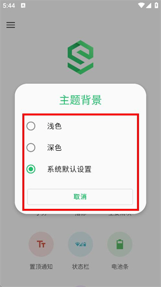 3、在主题背景设置页面,可选择浅色-深色-系统默认设置来设置主题背景。