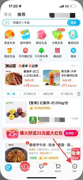 1、进入饿了么首页,点击底部我的,进入个人页面。