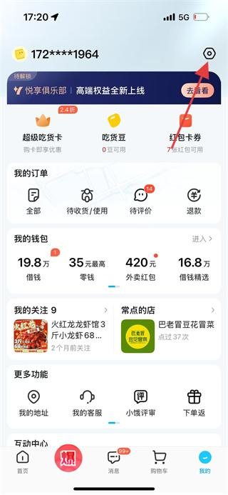 2、在个人页面,点击右上角设置图标,进入设置页面。