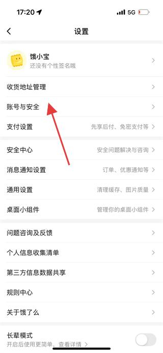 3、在设置页面,点击账号与安全,进入账号与安全页面。