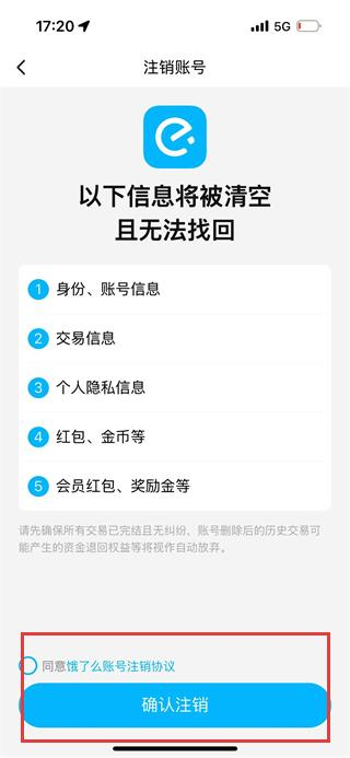 6、阅读并同意注销协议后,点击确认注销,完成账号注销。