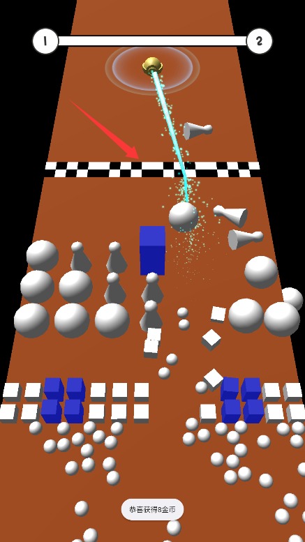 4、精准避开彩色障碍物并撞击白色目标物体,抵达终点即可完成通关领取奖励。