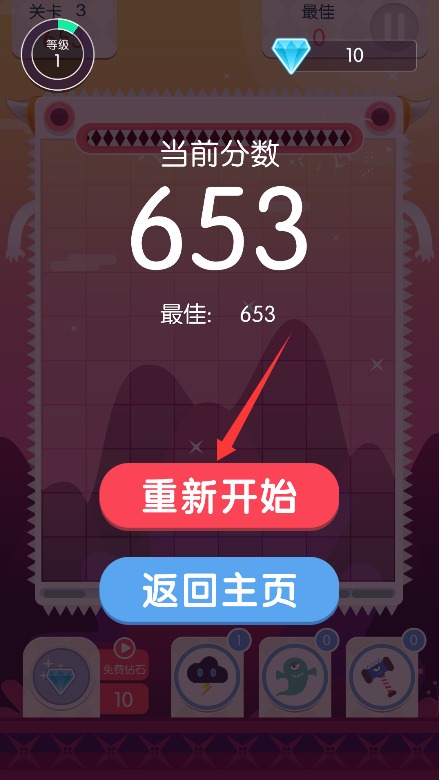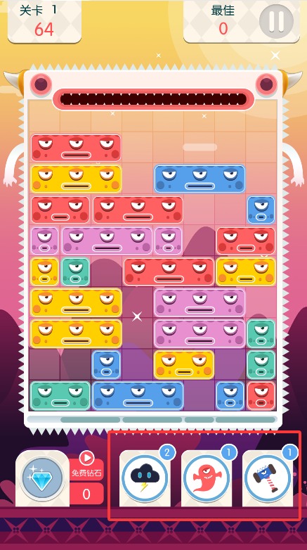 3、巧妙使用底部提供的特殊消除道具,能够快速清理场上的大量方块障碍。