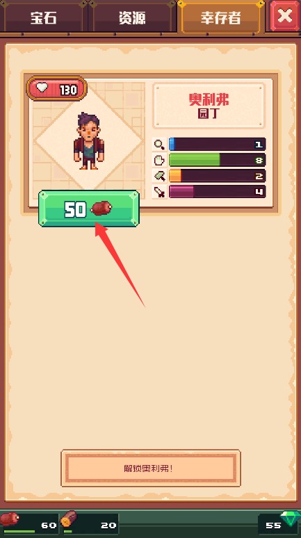 4、在人物库界面选择购买功能,使用游戏内资源即可招募新的幸存者成员。