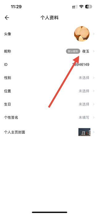 3、在个人资料详情页面点击昵称选项,进入昵称修改页面。