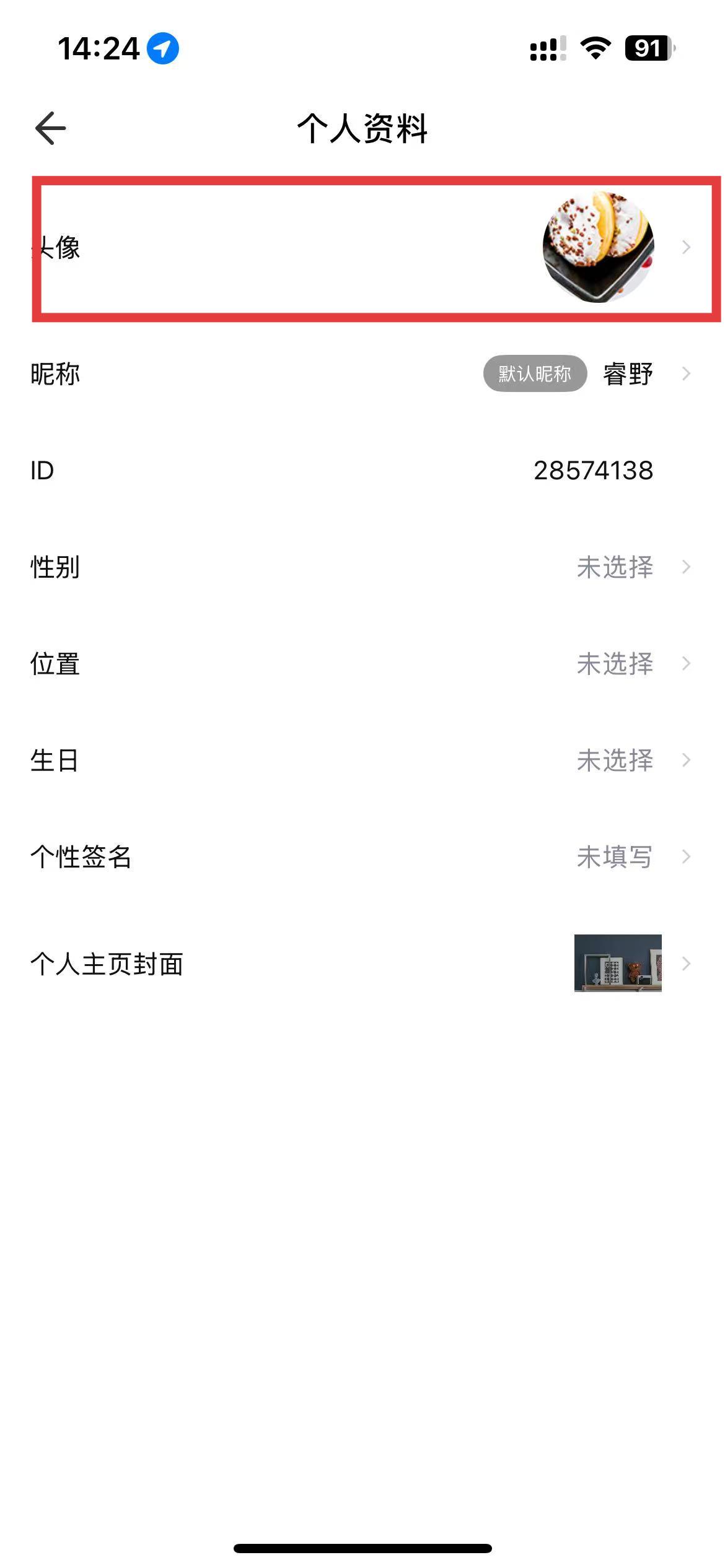2、在个人资料页面点击头像,进入个人资料详情页面。