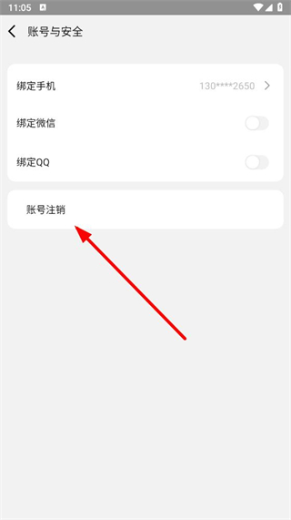 3、在账号与安全页面点击账号注销选项,进入申请注销账号页面。