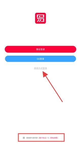 3、在登录的页面,选择其他方式登录并勾选用户协议与隐私政策。