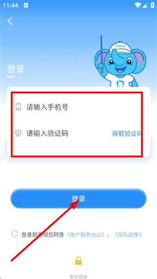 4、最后在输入手机号、验证码,点击登录,完成账号登录。