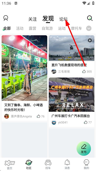 2、随后可以在社区页面,点击论坛,进入论坛页面。