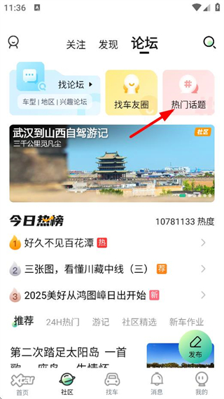 3、在论坛页面,点击热门话题,进入热门话题页面。