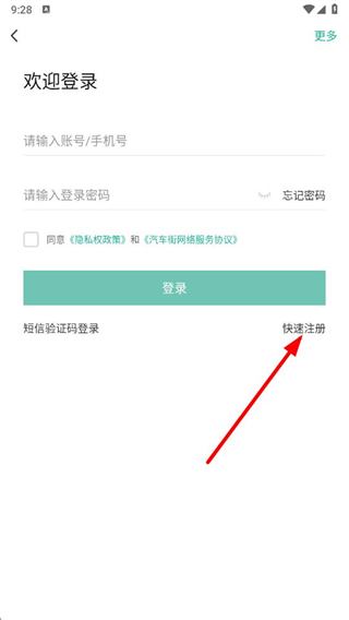 3、在登录界面点击快速注册选项,进入注册流程。