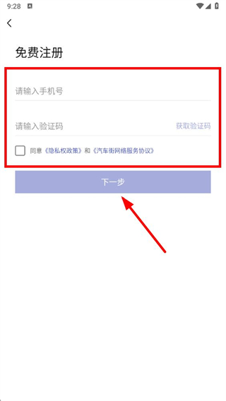 4、在免费注册页面输入手机号,获取并输入验证码,勾选同意协议后点击下一步,即可完成账号注册。