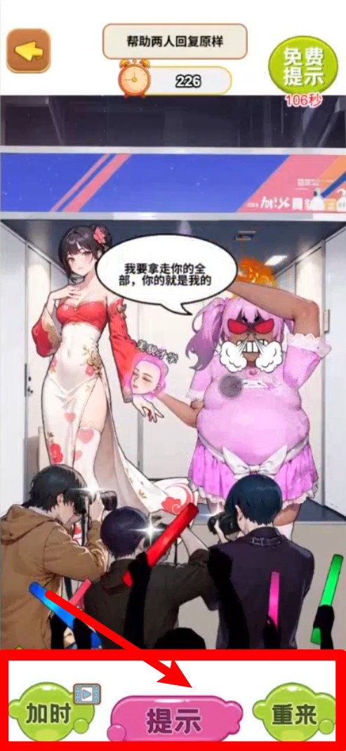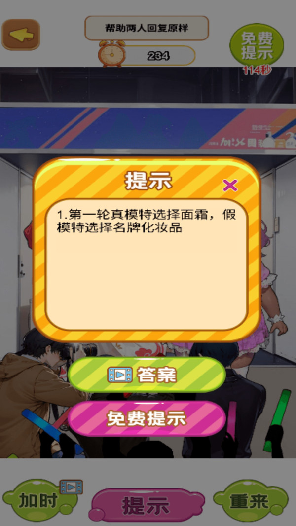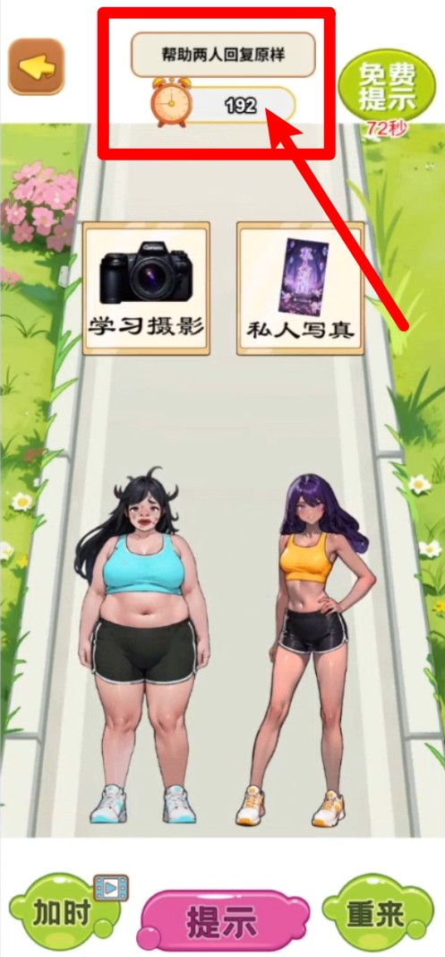 1.关卡任务:画面提示“帮助两人回复原样”,玩家需要在限定时间内完成挑战,选择合适选项来推动角色变化进程。