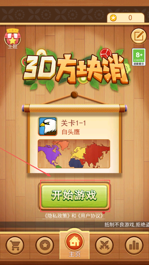 2、安装好游戏后打开它,进入游戏主界面,点击开始游戏选项,选择想要挑战的初始关卡进入。