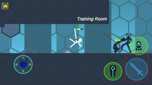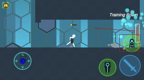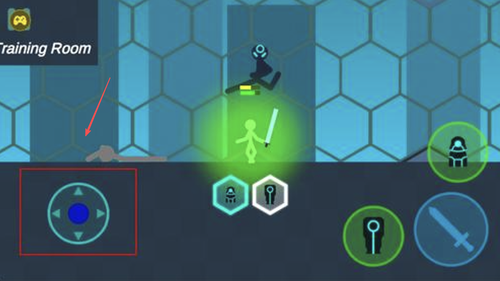 2、使用左侧虚拟摇杆控制火柴人角色在场景中移动,熟悉基础走位与场景布局。