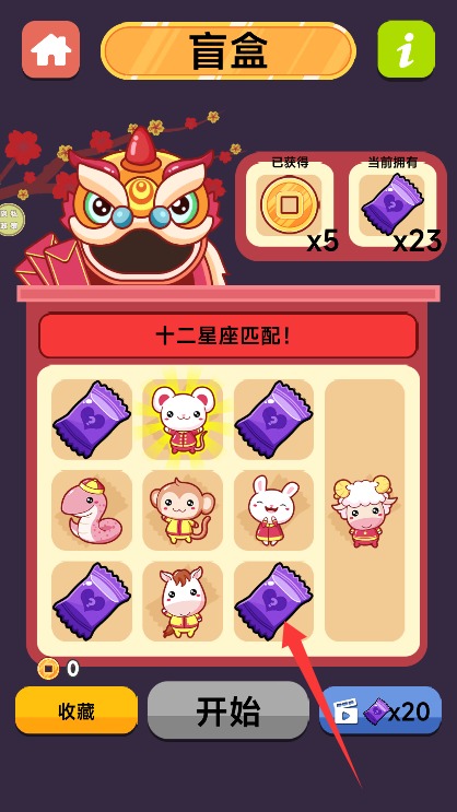 4、陆续点击全部盲盒进行匹配消除,收集金币与盲盒奖励以完成挑战任务。