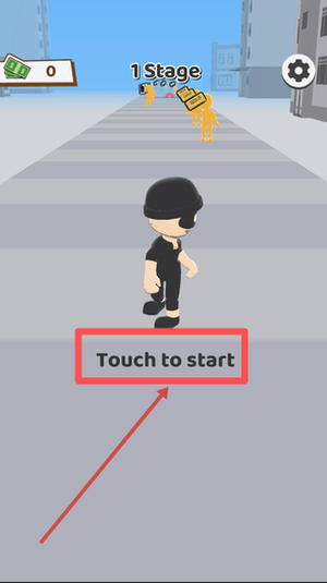 1、进入游戏后点击Touchtostart开始按钮,操控角色在街道赛道上奔跑,立即投入收集与躲避的双重任务。