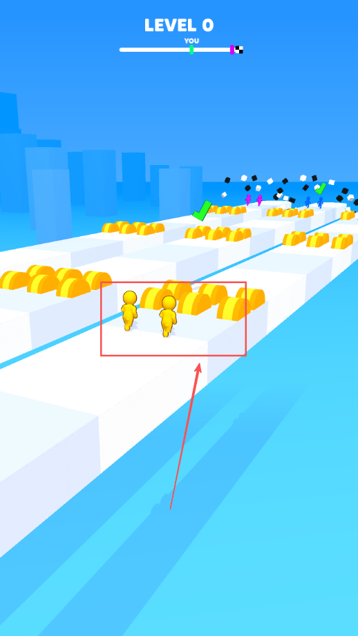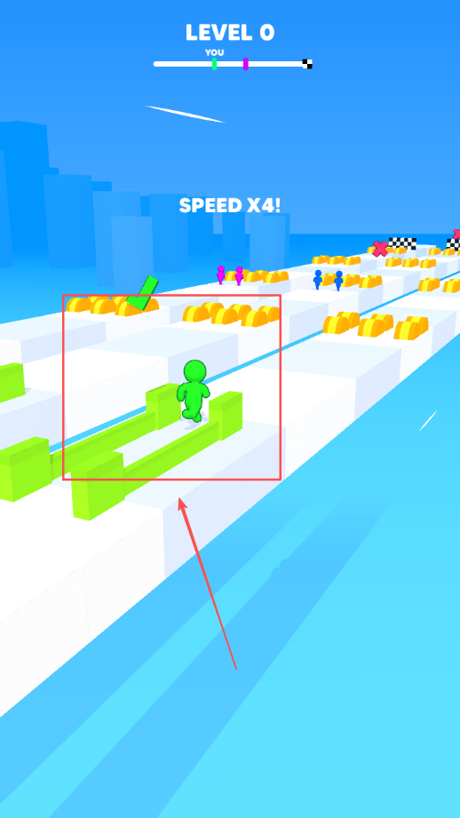 2、进入场景后,会看到当前操控的橡皮人以及前方的障碍,先熟悉场景内障碍的位置和移动规律,做好闯关准备。