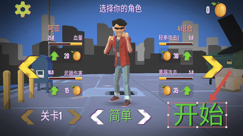 1、打开游戏后点击开始按钮进入主流程,选择关卡开启第一场战斗。