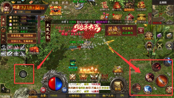 4、左侧虚拟摇杆控制人物移动前进方向,右侧技能按键可发动各类强力攻击招式。