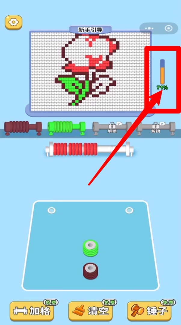 3.辅助工具使用:加格与锤子功能提供额外支持,玩家可根据需求灵活使用,提升完成图案的效率。