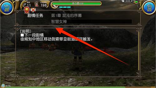 2、主线任务接取后,可在角色菜单的任务栏首项查看当前进度的详细指引。