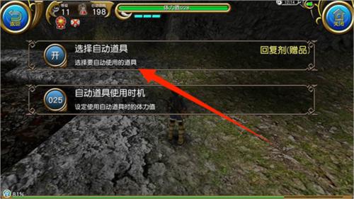 4、生命值降低时,点按角色名称即可在弹出面板中配置回复药品与自动恢复条件。