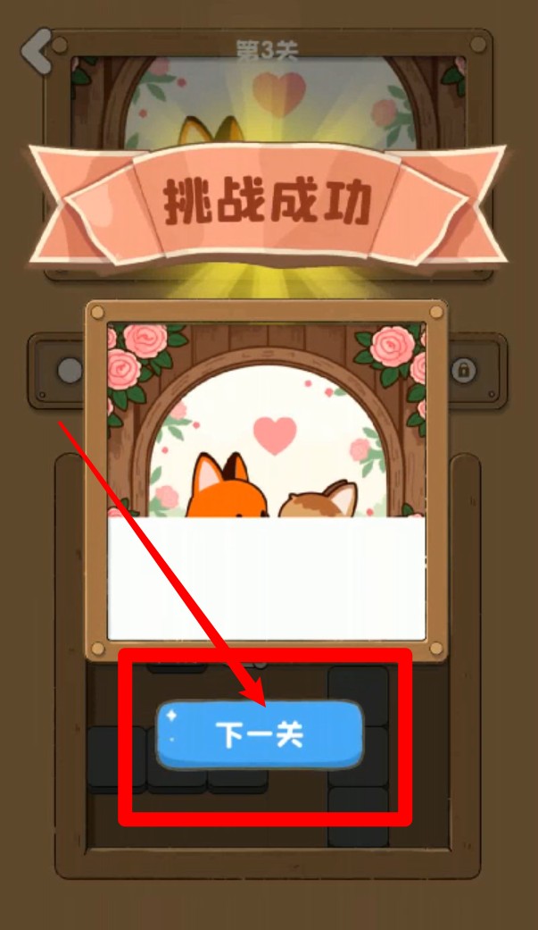 3.完成挑战:拼图完成后出现挑战成功提示,玩家可点击下一关按钮进入新的关卡继续体验。