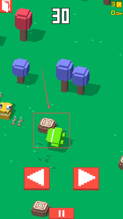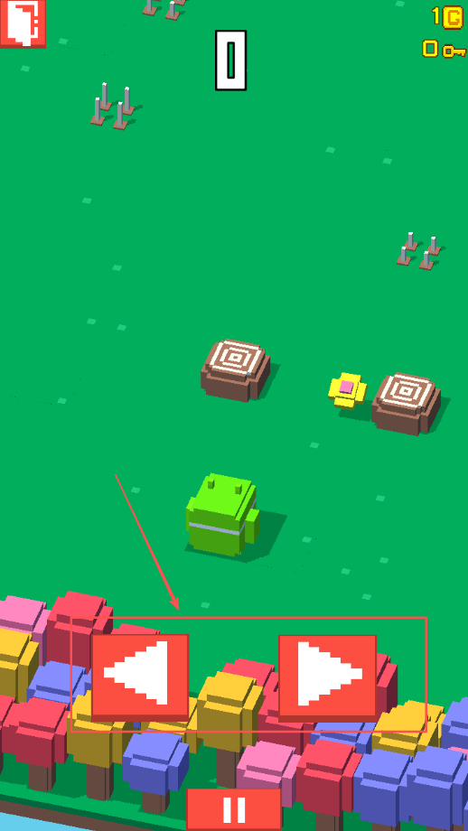 1、游戏采用敲击控制的方式,敲击左侧按钮让角色往左滚,敲击右侧按钮让角色往右滚,不按任何按键角色就会一直往前滚,无法向后移动。