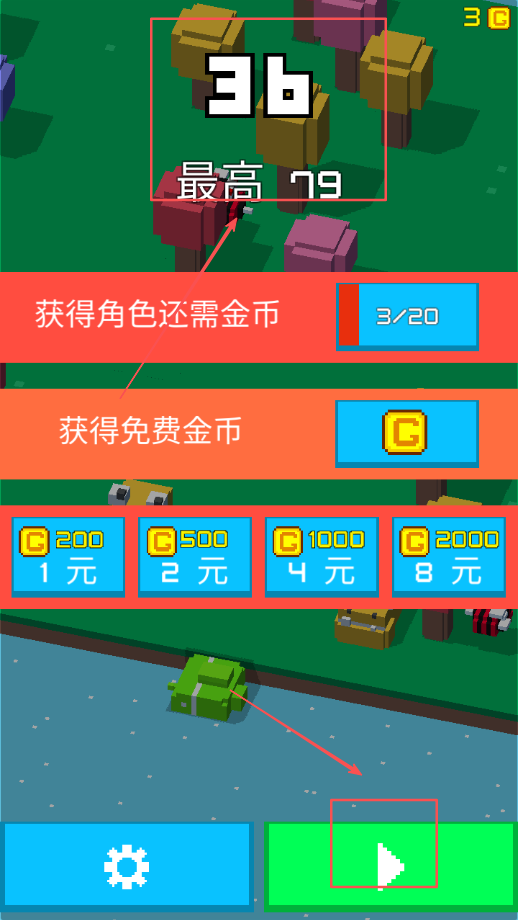 3、收集场景中的金币,积累的金币可以用来解锁新的角色形象或提升角色技能,同时努力提升自己的闯关成绩,刷新游戏的最高排行榜。