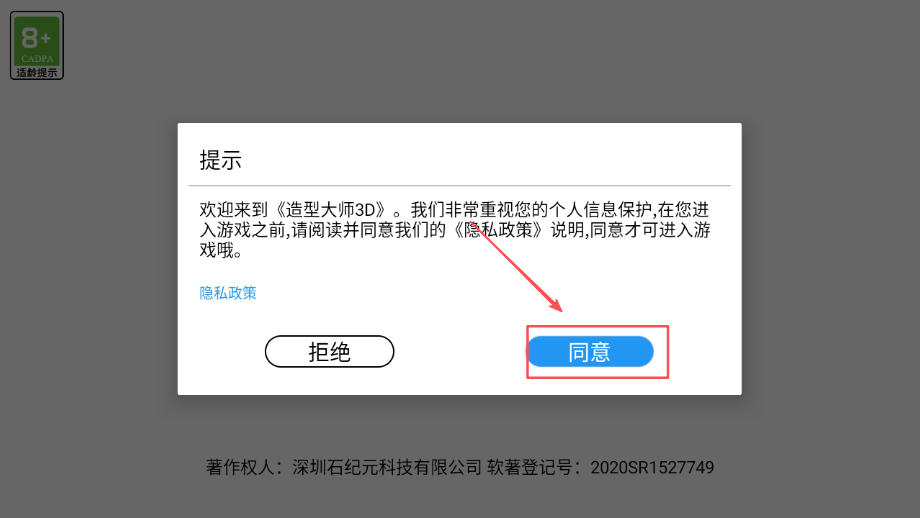 1、打开造型大师 3d 游戏后会看到游戏协议,点一下同意,不然没法继续往下用游戏的功能哦。