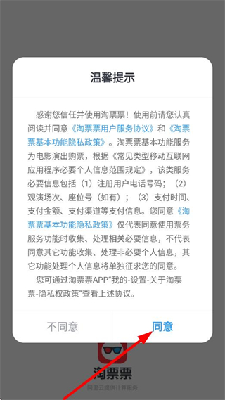 1、在温馨提示弹窗中,点击同意,进入APP主页面。
