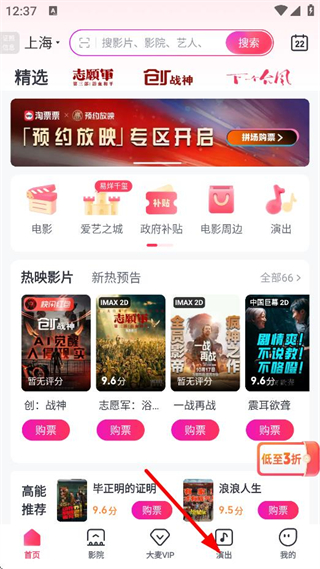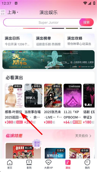 3、在演出娱乐页面,点击感兴趣的演出,进入演出详情页面。