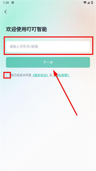 2、在注册页面输入手机号邮箱,勾选同意服务协议及隐私政策后,点击下一步。